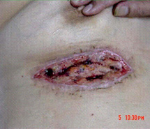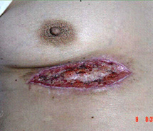 單純的手術(shù)治療切除癌灶后,應(yīng)用MEBO治療創(chuàng)面,創(chuàng)面出血少,病人無痛苦,并可避免擴大根治性手術(shù)的再損傷,通過換藥,無損傷的使創(chuàng)面愈合,并且可無損傷的抑制殘留腫瘤組織的生長,該類病人最終都是以炎性肉芽組織的形式愈合。但對于腫瘤的復(fù)發(fā)、再發(fā)、轉(zhuǎn)移是否有抑制作用,還需長期病例隨訪及進一步研究。