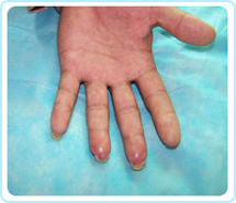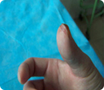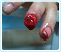 手是人體的一個重要器官,具有高度發(fā)達的運動和感覺功能。手部解剖精細、結構復雜、組織密集、相互交錯,共由27塊骨、19塊肌肉、17條肌腱以及眾多神經、血管、腱鞘、滑囊等組織構成。它們相互協(xié)同作用,完成比較復雜繁鎖的工作。隨著機械化程度的提高以及交通事故和生活上意外事故的上升,很容易造成手部損傷,尤其是手指的外傷非常常見。國外文獻報道,在急診創(chuàng)傷病例中,手外傷所占的比例在15%~28.6%在之間。特別是手指末節(jié)、指端損傷較常見。