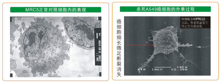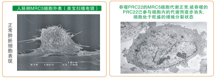 根據(jù)食品安全的基本原則,這個再生物質(zhì)被選出來后,要先確定這個物質(zhì)有沒有毒性。當初美寶胃腸膠囊申請的時候,全部送到醫(yī)科大做的實驗,證明沒有任何毒性反應(yīng)。很多參加試驗的小白鼠吃了不但不死還變胖了。這個毒性實驗結(jié)果引起了我的思考,我就想它能不能預(yù)防癌癥?我就將世界上典型的用正常的細胞變成癌細胞的實驗拷貝出來做做試試。若放上再生物質(zhì),正常細胞變?yōu)榘┘毎妥C明它沒有預(yù)防癌作用。最后的結(jié)果竟然是只要放上再生物質(zhì)就沒有一個正常細胞變癌細胞的。通過這個實驗結(jié)果我們可以看出了預(yù)防癌癥的結(jié)果,有了再生物質(zhì)后,用誘導(dǎo)的方法不能把細胞變?yōu)榘_@個實驗結(jié)束后,我又研究看這個物質(zhì)和癌是什么關(guān)系,是讓癌細胞不長還是讓癌細胞壞死?歷時5年的癌癥研究后,終于有了結(jié)果。這個研究今天給大家看看。我們首先在動物上做的實驗,而后又用人體做的原位實驗。要知道肺癌是現(xiàn)在發(fā)病率最高的一個癌癥,放療化療治療效果幾乎都是零,即使把腫瘤切除了也只能活幾年,甚至人們還在統(tǒng)計學上找不出到底手術(shù)治療和采用非手術(shù)治療哪個死得快的明顯差異。現(xiàn)在還沒找到對肺癌的治療的更好辦法。我們利用潛能再生細胞,用11號、12號、21號、22號、31號再生物質(zhì)等,每一個細胞相對一種型號的物質(zhì),我們現(xiàn)在吃的膳素是共210號。其中6個型號都是針對肺細胞的,讓肺細胞再生,在篩選中并不是所有讓細胞再生的物質(zhì)都能產(chǎn)生這個抗癌作用。我們做的實驗,首先看物質(zhì)對人的癌細胞及正常肺細胞對照比較有什么作用,首先11號、12號、22號使正常細胞都正常生長,同時癌細胞放這個型號物質(zhì)也發(fā)生了變化。其中比較好的是22號物質(zhì)。人們現(xiàn)在抗癌方法基本上是既能殺癌細胞又能殺好細胞。而我們通過實驗說明加入的這個22號物質(zhì)讓好的細胞生長,又能殺癌細胞。所以我們將這三個號的物質(zhì)作為人的再生物質(zhì)的實驗,也用在人吃的營養(yǎng)物質(zhì)上面。好多食物里面的東西都是讓癌細胞死,好細胞也死,還沒發(fā)現(xiàn)一種物質(zhì)能夠讓癌細胞死,好細胞活。但是我們找到的再生營養(yǎng)物質(zhì)既能讓好細胞活又能讓癌細胞死。這里面的機密是什么?大家來看看,這是人的正常肺細胞,我們用電子顯微鏡看它的形態(tài)。它吞噬了這個22號物質(zhì)后,這個細胞活著,并且開始分裂,再生物質(zhì)逐漸被細胞利用,再生物質(zhì)參與到細胞的建設(shè)中,而且這個細胞吞了再生物質(zhì)后就開始再生,分裂旺盛,但沒有變成其他異常細胞。這個是沒有吃再生物質(zhì)的好細胞,所以它的細胞核在同一時間沒有分裂。同樣的物質(zhì)給癌細胞吃進去后,癌細胞的吸附能力開始降低,細胞里面的臟器變形了,然后就死亡了。細胞死亡有兩種,一種是細胞自殺,另一種是細胞破了。而這個癌細胞沒有破,屬于癌細胞自殺。