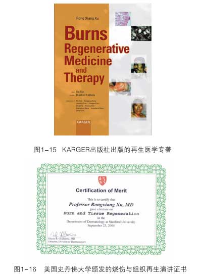 雖然我們在國際國內(nèi)學(xué)術(shù)會議上反復(fù)地講解身體內(nèi)由體細(xì)胞轉(zhuǎn)化為干細(xì)胞的實(shí)際規(guī)律,但世界胚胎干細(xì)胞研究的狂潮席卷生命科學(xué)界,各大學(xué)和醫(yī)院都設(shè)立胚胎干細(xì)胞研究室,都在按同一個夢想奮進(jìn)。于是,我們又在2002年8月,搞了一個生命科學(xué)大爆炸新聞發(fā)布會,宣布已成功地實(shí)現(xiàn)了體細(xì)胞轉(zhuǎn)化為干細(xì)胞(潛能再生細(xì)胞)再克隆器官的全過程,公布了克隆出的組織器官實(shí)物,并宣稱5年后完成人類組織器官的全部復(fù)制。國家科技部也組織院士進(jìn)行了科學(xué)聽證會議,隨即,美國舉行的世界干細(xì)胞與再生醫(yī)學(xué)大會和在新加坡舉行的干細(xì)胞大會特約我做嘉賓作如何用體細(xì)胞克隆組織器官、和臨床如何用于治療創(chuàng)傷和胃腸潰瘍疾病的專題演講。2004年,世界三大醫(yī)學(xué)文獻(xiàn)出版社之一的瑞士KARGER出版社①正式出版了我的再生醫(yī)學(xué)英文專著《燒傷再生醫(yī)學(xué)與療法》,封底書評介紹,這是一本用臨床應(yīng)用實(shí)踐陳述普通細(xì)胞原位再生皮膚器官過程的書,對細(xì)胞生物學(xué)、干細(xì)胞研究、免疫學(xué)研究等,都有著極其重要的價值。出版社為了對大家的科學(xué)研究產(chǎn)生有利的作用,在出版社的網(wǎng)站上寫道:這是一本“革命性的和令人驚奇的”著作。這樣的呼吁,在世界范圍內(nèi)產(chǎn)生了較大的影響,比如德國、英國、美國等國知名的生命科學(xué)家專程來華與我們交流干細(xì)胞的研究,瑞典科學(xué)委員會委托國家電視臺專程來華采訪。美國史丹佛大學(xué)特約去大學(xué)作專題學(xué)術(shù)報告,美國哈佛大學(xué)皮膚學(xué)教授們專程到家里進(jìn)行學(xué)術(shù)交流。