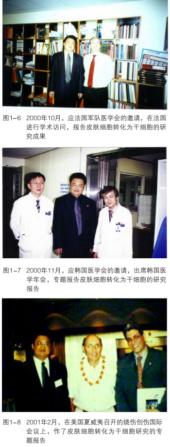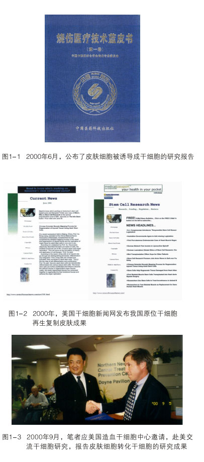 21世紀(jì)前葉,美國科學(xué)雜志將胚胎干細(xì)胞研究評為1999年度世界十大科學(xué)成就之首,但惹來了生命倫理的爭論。而我們的研究早已破解了皮膚器官再生的秘密,則在1997年培訓(xùn)全國的高級職稱醫(yī)生如何再生復(fù)原大面積深度燒傷后的皮膚。當(dāng)看到幾乎是全世界的生命科學(xué)家都掀起了胚胎干細(xì)胞研究的熱潮時,我們的心情同樣是激動,但這種激動并不是歡呼胚胎干細(xì)胞的研究,而是為這種熱潮感到擔(dān)心,因我們的研究所得到的干細(xì)胞規(guī)律并不是他們想象的那樣,作為生命科學(xué)的研究者都應(yīng)該懂得,細(xì)胞生命規(guī)律無論是胚胎來的干細(xì)胞,還是成體組織來的干細(xì)胞,其生命規(guī)律是一致的。不應(yīng)該再出現(xiàn)別的規(guī)律。究竟是誰對誰錯?我們肯定的回答,我們的發(fā)現(xiàn)不會錯!因?yàn)槲覀兪菑囊呀?jīng)獲得的器官破解的干細(xì)胞生命規(guī)律,是已經(jīng)完成和實(shí)現(xiàn)的。而胚胎干細(xì)胞想象的克隆器官的規(guī)律只是幻想出來的,還沒有實(shí)踐證實(shí)。于是,為了給世界熱衷于胚胎干細(xì)胞研究的生命科學(xué)家提個醒,我們于2000年6月正式出版了著作,公布了皮膚組織細(xì)胞可轉(zhuǎn)化為干細(xì)胞再生器官的臨床結(jié)果和生命規(guī)律的秘密。并舉行了中外新聞發(fā)布會,為了讓大家深刻地明白,我們又借助《科技日報》,進(jìn)行了幾萬字的破解體細(xì)胞轉(zhuǎn)干細(xì)胞再生器官探秘過程的曝光報道。這是人類發(fā)明體細(xì)胞轉(zhuǎn)化為干細(xì)胞、原位再生復(fù)原組織和器官科學(xué)體系的科學(xué)突破起始點(diǎn)。相繼于2001年舉行了胃腸組織細(xì)胞克隆胃腸器官獲得成功的中外新聞發(fā)布會,重復(fù)了皮膚細(xì)胞轉(zhuǎn)化為干細(xì)胞的科學(xué)規(guī)律。在完成系統(tǒng)的研究后,我們申報了這一科學(xué)平臺的美國、歐洲、中國專利,現(xiàn)已獲得專利權(quán)。(附一組在國際上傳播體細(xì)胞轉(zhuǎn)化形成干細(xì)胞成果足跡的照片)