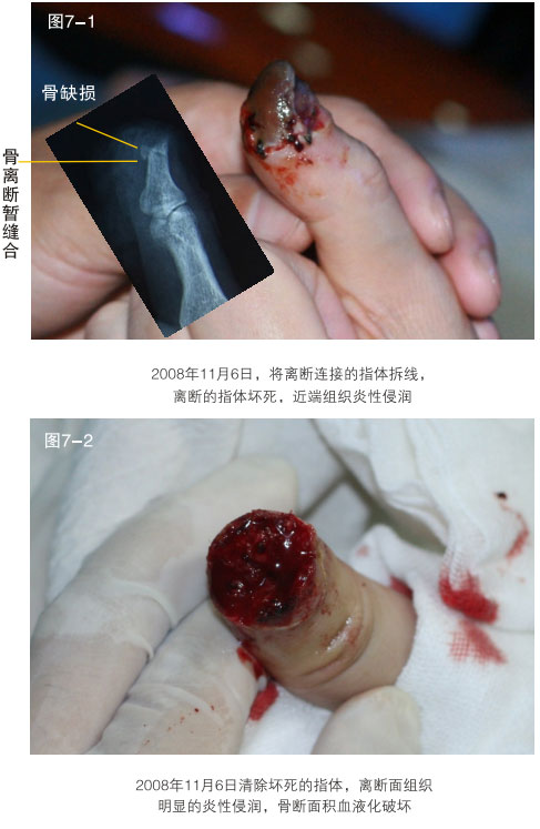 2008年11月2日離斷連接失敗,2008年11月6日再生復原治療,2008年1月再生缺如愈合