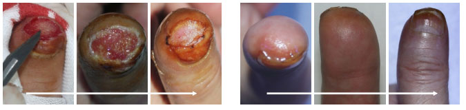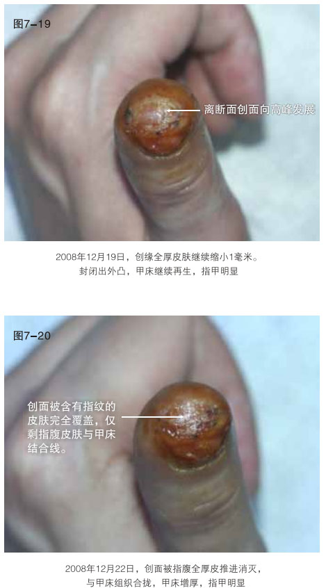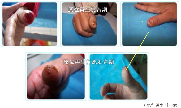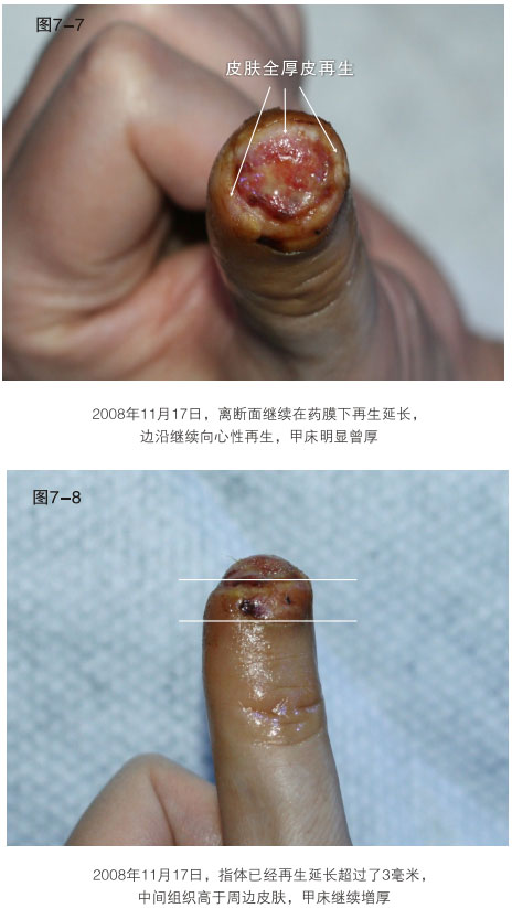 臨床應用資料為手指末節(jié)斷指再生,斷指系指指體離斷性損傷,包括指體的骨骼、肌肉、神經(jīng)、血管、軟組織、皮膚全部組織器官的離斷缺如,這種損傷在外科學治療上,目前采取的是顯微外科的接指技術(shù),但對于末節(jié)離斷,因為血管很小并處于末端,難以將離斷的指體連接成活,無奈只能采取破壞性的離斷面封閉技術(shù),造成終身的指體殘廢。我們的原位再生復原技術(shù),已經(jīng)實現(xiàn)了臨床末節(jié)離斷損傷的原位再生復原。