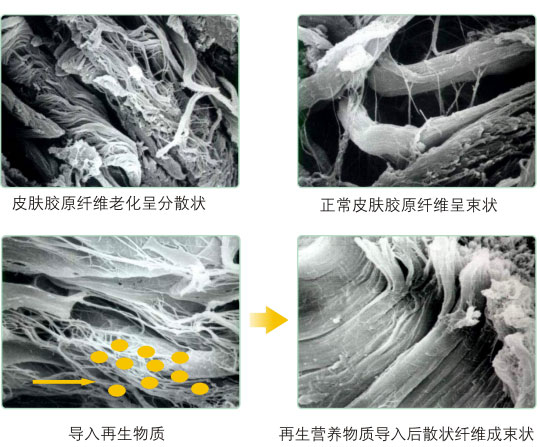 再生營養(yǎng)物質(zhì)被皮膚吸收后,再生營養(yǎng)真皮結(jié)締組織細胞,使其再生潛能發(fā)揮,再生更新和再生復原正在或已經(jīng)衰老的細胞,使皮膚復原到細胞屬性的年輕組織狀態(tài)。