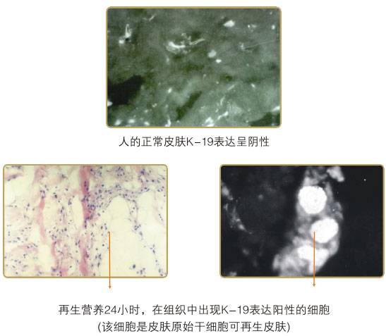 ● 再生營養(yǎng)物質(zhì)被皮膚吸收后,再生營養(yǎng)皮膚基底層及真皮組織的干細胞,恢復和再生復原其器官和組織的結(jié)構(gòu)和功能,保持表皮及真皮內(nèi)上皮組織、皮膚內(nèi)各器官旺盛的活力,預(yù)防和阻止皮膚衰老引起的色斑等異常皮膚疾患。附角蛋白19型干細胞研究圖片。