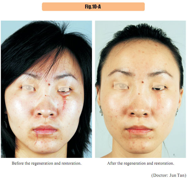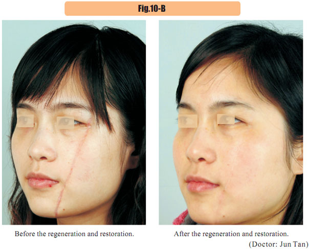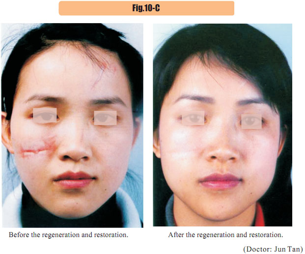 It is all known that there is no way to eliminate the formed skin scars by the current medical treatment.  In our present research program, the regenerative nutritional substance compositions were introduced into the scar tissues, so that the scared tissues can regenerate and restore back to normal skin in situ easily.