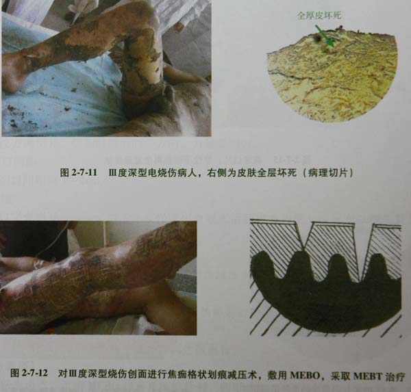 2較大面積的Ⅲ度深型燒燙傷創(chuàng)面,在病人生命體征穩(wěn)定的情況下,可采取以上方法治療。
