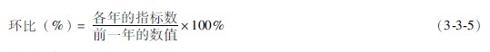 第(2)欄:環(huán)比☆,以前一時點或時期(年)的指標(病床數(shù))為基數(shù)(分母),因基數(shù)依次更換,用公式335算得各個時點或時期的相對比(環(huán)比)。