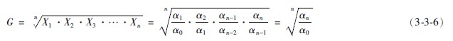 公式中G為平均發(fā)展速度;α0為基期水平;ɑ1 、ɑ2…為代表各期水平;ɑn為末期水平;n為環(huán)比發(fā)展速度的項數(shù),用對數(shù)計算。計算公式為: