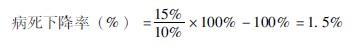 另外,兩年發(fā)病率或兩年治愈率的比較也屬于動態(tài)相對數(shù)指標。假設(shè)2003年大面積燒傷病死率為15%,2004年大面積燒傷病死率為10%,求2004年大面積燒傷病死率下降了多少?則:
