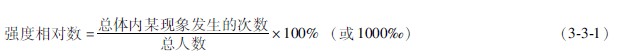 強度相對數(shù)又稱率的指標或強度指標,是內(nèi)容不同而有聯(lián)系的兩個總量指標的比。它表明疾病或某現(xiàn)象在一定范圍內(nèi)出現(xiàn)的次數(shù)或普遍程度,通常以100或1 000或10萬為基數(shù)表示。