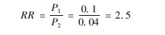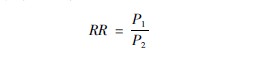 RR通常用于前瞻性研究。公式中的P1和P2分別表示同一事件在兩種不同情況下的發(fā)生率。一般用P1表示暴露在危險因素下某事件的發(fā)生率;P2表示未暴露在危險因素下某事件的發(fā)生率,兩者之比值具有倍數(shù)關(guān)系。事件指的是諸如患病、死亡、感染、發(fā)病等。