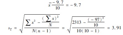 3分別計算差數(shù)的平均值(x)與標(biāo)準誤(sx):