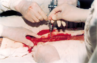5-5-4 用骨鉆在骨面按間隔1cm鉆孔,鉆孔深度達髓質(zhì),有微出血