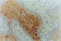 5-3-9 MEBT/MEBO治療30天,細胞角質素AE3呈陽性。(說明患者燒傷創(chuàng)面是自我再生修復) HE×20