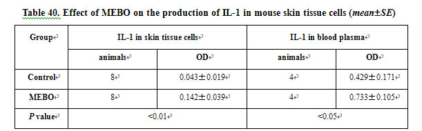 The results suggested that:  1) MEBO can prevent infection;  2) the wound-healing benefit and the reduction of scar formation in the MEBO group were related to its effect of increasing the production of IL-1 by skin cells.