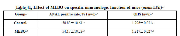 Table 41. Effect of MEBO on specific immunologic function of mice (meanSE)