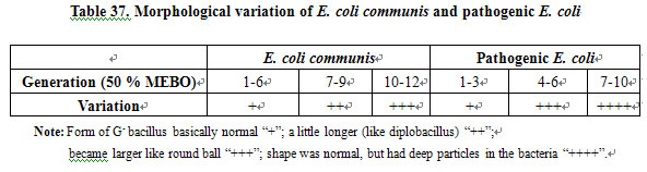  Morphological Variation of Bacteria. The results of morphological variation of E. coli communis and pathogenic E. coli cultured in medium with MEBO are shown in Figure 14 and Table 37. These reveal that MEBO acts to induce the variation of both E. coli communis (which is common in burns wounds), and pathogenic E. coli. However, the variation of different bacteria might occur at different times.