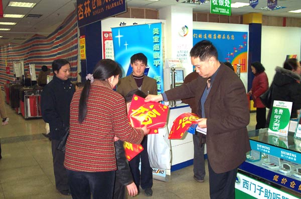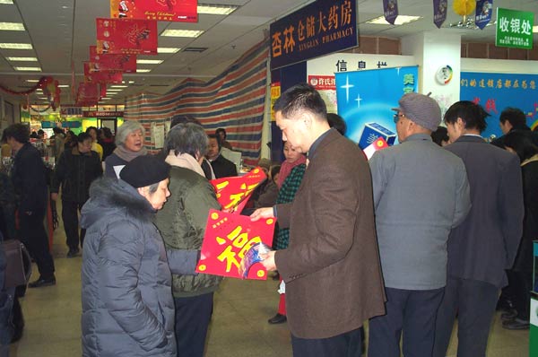 深冬的北國冰城哈爾濱,白天溫度已降至零下二十度。但我們市場人員的工作熱情絲毫未減。為響應(yīng)集團(tuán)社會化市場的號召,這一天,我們冒著嚴(yán)寒在當(dāng)?shù)貛讉€重要居民小區(qū)展開了迎新年,家家送“?!被顒?。這一活動受到了百姓的熱烈歡迎,我們也同時又做了大量美寶產(chǎn)品的宣傳。