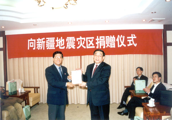 2003年2月24日上午在新疆維吾爾自治區(qū)巴楚-伽師發(fā)生的6.8級強烈地震使災(zāi)區(qū)人民的生命財產(chǎn)遭受嚴(yán)重?fù)p失,這一消息牽動了祖國大家庭每一位成員的心,社會各界紛紛向地震災(zāi)區(qū)捐款、捐物參與救助。