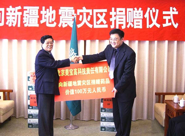 再向災(zāi)區(qū)和貧困地區(qū)獻(xiàn)愛心——美寶集團(tuán)向新疆地震災(zāi)區(qū)捐贈100萬元保健品