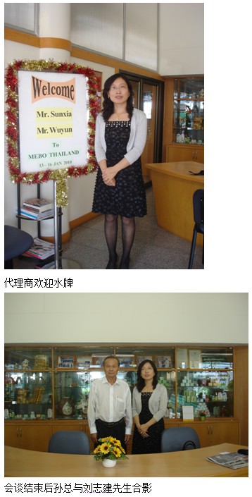 1月14日,孫總與泰國代理商劉志建先生于MEBO(Thailand)公司就泰國美寶市場拓展規(guī)劃進行了親切的商務(wù)會談。雙方回顧了美寶泰國的發(fā)展歷程,劉先生深情地介紹了早年協(xié)助發(fā)展美寶的艱辛經(jīng)歷,美寶燒傷膏是泰國第一個正式注冊的中國藥品,這是美寶的驕傲,也是中國的驕傲。近幾年祖國的強大使所有的海外華人興奮不已,談到動情處時,擁有濃濃愛國熱情的劉先生幾度熱淚盈眶。與此同時,雙方深入地分析了多年來泰國美寶發(fā)展緩慢的狀況,并確定了下一步總體發(fā)展的發(fā)向和思路。此次高層會晤進一步提升代理商對美寶總體海外規(guī)劃及技術(shù)產(chǎn)品的高度認可和理解,在技術(shù)產(chǎn)品發(fā)展理念、經(jīng)銷商經(jīng)營掌控等方面達成了多項共識。