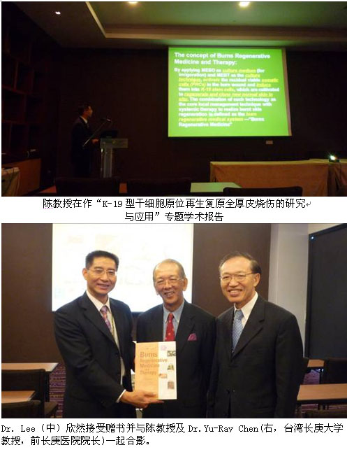 Dr. Lee在聽完陳教授的報告后激動的說:“我們新加坡總醫(yī)院20年前完成了國際上第個MEBO的臨床實驗,當時的100多例在臨床上取得了與其它方法一樣滿意的效果,我們當時知道美寶會有神奇的效果,但不知道其原因是什么,現(xiàn)在聽了你的報告,這是干細胞原位再生的結(jié)果!這是很令人振奮的!我對你們K19的實驗很感興趣,如果除了免疫熒光外,還有其它的實驗數(shù)據(jù)就更好了,希望美寶發(fā)展的更好!”他在會后欣然接受了陳教授所贈徐榮祥教授的專著Burns Regenerative Medicine and Therapy. 并表示希望能與美寶有更好地合作,也請美寶團隊轉(zhuǎn)達對徐榮祥教授的誠摯問候!
