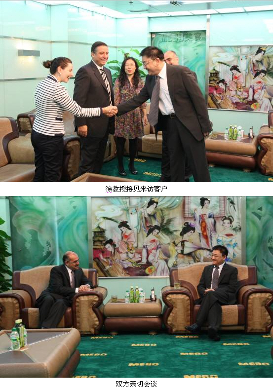 隨后,美寶國(guó)際集團(tuán)董事局主席徐榮祥教授親切接見(jiàn)了Dr. Ayman Sahli一行,并與來(lái)訪客人進(jìn)行了親切的會(huì)談。徐教授表示阿聯(lián)酋海灣藥廠一直都是美寶國(guó)際集團(tuán)最重要的合作伙伴之一,但是如今的Julphar和MEBO均與往日大有不同,雙方真正的合作才剛剛開(kāi)始,相信隨著合作的不斷深入和拓展將為雙方帶來(lái)更多的雙贏機(jī)會(huì)。徐教授對(duì)雙方所達(dá)成的新產(chǎn)品、新市場(chǎng)的新領(lǐng)域合作協(xié)議表示祝賀,并向客人全面通報(bào)了一年來(lái)美寶在癌癥研究及再生會(huì)所等方面取得的重大進(jìn)展。Dr. Ayman Sahli一行向徐總及美寶表示祝賀,同時(shí)他們也轉(zhuǎn)達(dá)了王子對(duì)徐總的親切問(wèn)候。