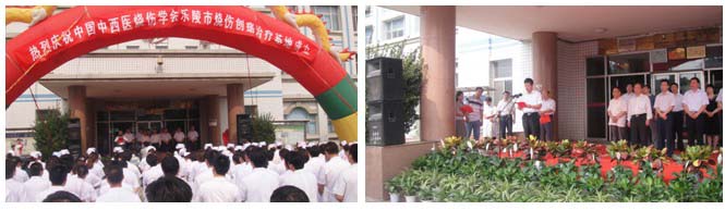 樂陵市孫大鵬副市長(zhǎng)和中國(guó)中西醫(yī)結(jié)合學(xué)會(huì)燒傷專業(yè)委員會(huì)主任委員肖摩教授和為治療基地揭牌,肖摩主任宣讀了中國(guó)中西醫(yī)結(jié)合學(xué)會(huì)燒傷專業(yè)委員會(huì)批復(fù)文件并致辭,樂陵市衛(wèi)生局局長(zhǎng)周曰強(qiáng)為揭牌儀式致辭充分肯定成立燒傷創(chuàng)瘍治療基地的重要意義并提出希望與要求。