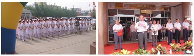 上午9時(shí)整,醫(yī)院門診大樓前喜氣洋洋,一派節(jié)日氣氛,醫(yī)院醫(yī)護(hù)人員整齊列隊(duì)和前來祝賀的各級(jí)醫(yī)療單位代表和各界和媒體記者歡聚一堂。掛牌儀式由樂陵市人民醫(yī)院高智亭院長(zhǎng)主持,出席開幕式的領(lǐng)導(dǎo)有樂陵市孫大鵬市長(zhǎng),樂陵市衛(wèi)生局局長(zhǎng)周曰強(qiáng)、中國(guó)中西醫(yī)結(jié)合學(xué)會(huì)燒傷專業(yè)委員會(huì)主任委員肖摩教授、泰山醫(yī)學(xué)院王廣順教授、樂陵市政協(xié)主席兼人民醫(yī)院馬院長(zhǎng)和市直醫(yī)療機(jī)構(gòu)相關(guān)負(fù)責(zé)人,各鄉(xiāng)鎮(zhèn)衛(wèi)生院院長(zhǎng)及技術(shù)骨干近200人參加了揭牌儀式。