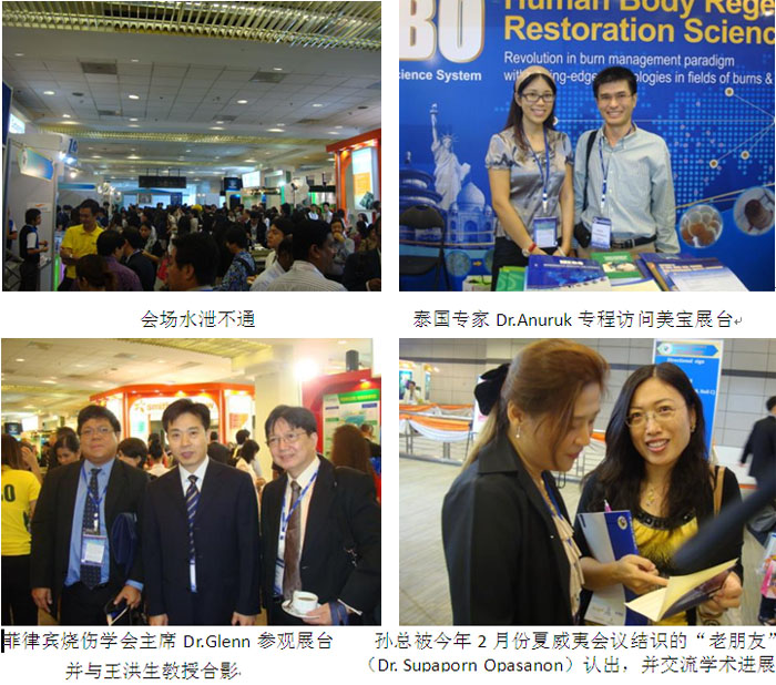 9月12日,第八屆亞太燒傷會(huì)議暨第三屆亞洲創(chuàng)面修復(fù)會(huì)議繼續(xù)舉行,會(huì)場來自30多個(gè)國家的專家人頭攢動(dòng),接踵摩肩,熱情洋溢地彼此交流。 伴著異國他鄉(xiāng)中秋節(jié)的節(jié)日氛圍,今天美寶再生醫(yī)學(xué)展臺(tái)接待了來自美國、敘利亞、泰國、印尼、菲律賓、馬來西亞等國家數(shù)以百計(jì)的新老朋友,展臺(tái)被圍得水泄不通,美寶團(tuán)隊(duì)各自出擊,分工有序,積極并專業(yè)地接待來訪專家,為他們答疑解惑。各國專家對(duì)于美寶再生醫(yī)學(xué)的發(fā)展紛紛表示贊嘆不已,對(duì)美寶國際事業(yè)發(fā)展也為之側(cè)目,飛速發(fā)展美寶的實(shí)力讓人刮目相看!