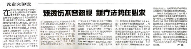 徐榮祥教授發(fā)明的皮膚原位再生醫(yī)療技術(shù)(燒傷濕潤(rùn)暴露療法/濕潤(rùn)燒傷膏MEBT/MEBO)就是符合以上要求的燒傷治療新方法,也是衛(wèi)生部從1991年開始向全國(guó)基層醫(yī)療衛(wèi)生單位推廣普及的十年百項(xiàng)科技成果之一。為了讓廣大群眾和消費(fèi)者了解這項(xiàng)新技術(shù),我們將在這里比較系統(tǒng)的,分期介紹這種療法的設(shè)計(jì)原理、使用方法、臨床療效和應(yīng)用中的注意事項(xiàng)。希望大家掌握這種療法的基本常識(shí)和操作技術(shù),有備無(wú)患,以防萬(wàn)一,在自己或家人、同事受到燒燙傷危害時(shí)不至于措手不及,及時(shí)用藥、及時(shí)治療,緩解燒傷的痛苦,減少后遺癥的發(fā)生。這對(duì)保證傷員愈后的生活質(zhì)量和工作能力都是有很大幫助的。