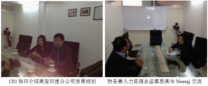 2013年1月29日下午, 印度分公司CEO張印與印度分公司財(cái)務(wù)兼人力資源總監(jiān)竇思亮一同前往會(huì)計(jì)稅務(wù)律師事務(wù)所NEERAJ BHAGAT & CO,就印度分公司的日常財(cái)務(wù)、印度分公司的稅務(wù)、印度分公司的審計(jì)、印度分公司的資金、印度分公司的銷售資金周轉(zhuǎn)和運(yùn)作、印度分公司員工的福利待遇、印度分公司的中遠(yuǎn)期投資規(guī)劃進(jìn)行了會(huì)談。