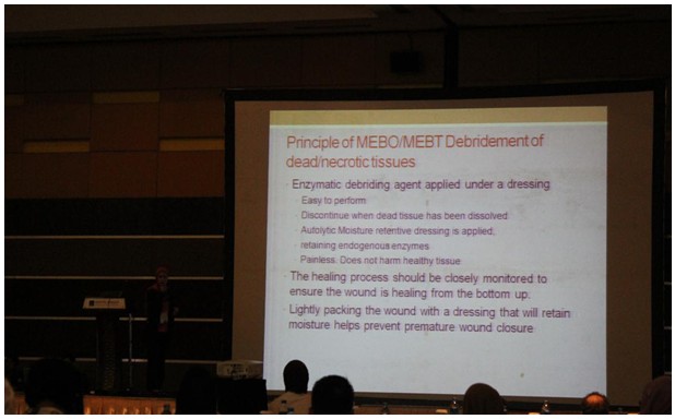 6月7日,大會演講繼續(xù)進(jìn)行。來自馬來西亞的再生醫(yī)學(xué)專家Hospital of Kuala Lumpur婦產(chǎn)科主任Dr. Noor Halizah Yossulf,作為主題發(fā)言人之一在全體大會上介紹了再生療法在婦產(chǎn)科方面的應(yīng)用。她的演講從4年前接觸再生醫(yī)學(xué)開始,經(jīng)過兩年的不斷了解和試用,她于2011年正式開始應(yīng)用再生醫(yī)療技術(shù)。經(jīng)過兩年的臨床實(shí)踐,她將再生醫(yī)療技術(shù)主要應(yīng)用各種產(chǎn)科手術(shù)切口病例,包括剖腹產(chǎn)術(shù)后手術(shù)切口裂開并長期難愈的病例,會陰側(cè)切病例等;此外,她也把再生技術(shù)應(yīng)用在難愈性創(chuàng)面如糖尿病潰瘍、褥瘡等。多達(dá)20例臨床真實(shí)、詳盡、完整的病例的現(xiàn)場展示,引起了與會人員強(qiáng)烈的反響。茶歇期間,很多醫(yī)生圍擁著Dr. Halizah,咨詢各種應(yīng)用問題,并請求分享相關(guān)的美寶研究文獻(xiàn)。Dr. Halizah熱情耐心地講解,并將很多醫(yī)生介紹到再生醫(yī)學(xué)的展臺進(jìn)一步深入了解再生醫(yī)療技術(shù)。