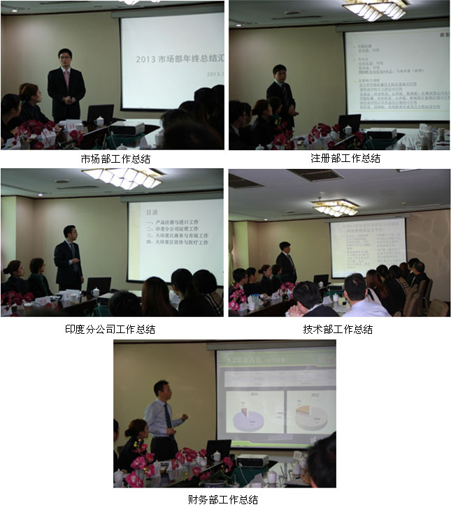 上午的會(huì)議主題為2013年總結(jié),國(guó)際市場(chǎng)集團(tuán)各部門(mén)負(fù)責(zé)人由吳云、張印、陳剛、舒葉、肖舸、樂(lè)盛華、劉林、張京艷分別就各自所轄部門(mén)2013年的工作總結(jié)進(jìn)行了詳細(xì)地匯報(bào),總結(jié)了2013年取得剖析工作中存在的不足,提出了基本的工作改進(jìn)思路。隨后,孫總就各部門(mén)的工作總結(jié)分別針對(duì)性地進(jìn)行了精準(zhǔn)地點(diǎn)評(píng),一方面肯定了國(guó)際市場(chǎng)集團(tuán)在面臨2013國(guó)際市場(chǎng)遇到的多項(xiàng)客觀阻力的前提下所取得的成績(jī),特別是在整體銷(xiāo)售回款目標(biāo)任務(wù)完成;另一方面針對(duì)各部門(mén)工作存在的不足,包括各市場(chǎng)終端活動(dòng)掌握的匱乏,分公司工作進(jìn)度緩慢及經(jīng)營(yíng)模式無(wú)突破等方面,一陣見(jiàn)血地提出了批評(píng)并分別做出了明確的改進(jìn)要求。