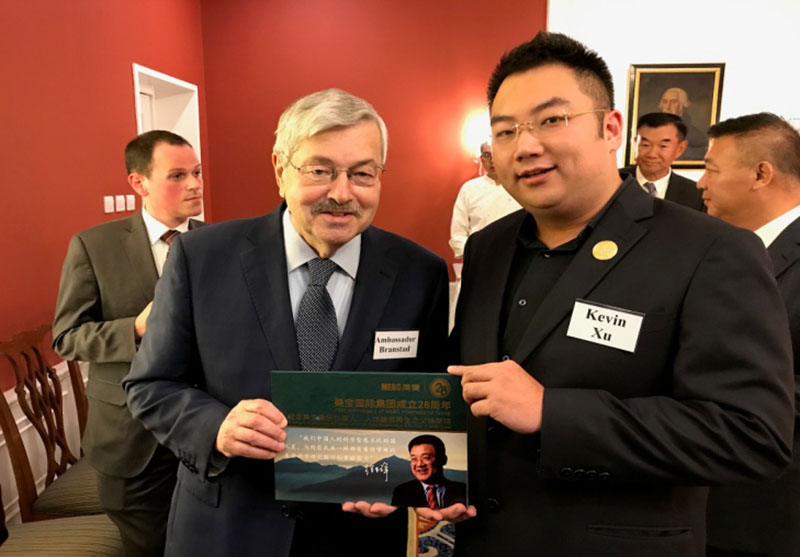 2017年9月14,美國駐華大使布蘭斯塔德及其夫人在北京的大使官邸舉行晚宴招待重要的美國駐華使領(lǐng)館官員以及政商領(lǐng)袖,答謝大家對促進中美經(jīng)濟發(fā)展和友好關(guān)系做出的巨大貢獻并期待在其任期內(nèi)使中美的發(fā)展更進一步。美寶集團董事局主席徐鵬應(yīng)邀出席晚宴并贈送徐榮祥紀(jì)念郵票冊給布蘭斯塔德大使。