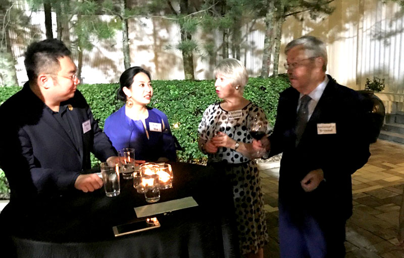 晚宴開始前,布蘭斯塔德致辭感謝在場所有對促進中美關(guān)系做出貢獻的工作人員和政企精英,并回顧了他與習(xí)主席友誼的淵源以及他與現(xiàn)任美國總統(tǒng)的友好關(guān)系。席間大使與夫人特地來到徐鵬桌上與其暢聊20多分鐘,回顧了雙方數(shù)次見面的友誼之旅,特別是2015年9月22日在習(xí)主席訪美的西雅圖站,時任艾奧瓦州長的布蘭斯塔德和加州州長顧問的徐鵬共聚省州長論壇,當(dāng)時布蘭斯塔德攜帶了習(xí)主席早年在艾奧瓦州與他的合影老照片請習(xí)主席簽字留念,習(xí)主席收下了但沒有當(dāng)場簽還。出人意料的是當(dāng)晚的宴會上習(xí)主席帶來了簽署其姓名和日期并已經(jīng)裝裱好的老照片贈予布蘭斯塔德,令其感動萬分,這張珍貴的老照片被布蘭斯塔德隨身攜帶,擺放在了其大使官邸的會客廳中。這件事也深深觸動了徐鵬,使其對習(xí)主席的為人和其領(lǐng)導(dǎo)下的中國的前途充滿信心。