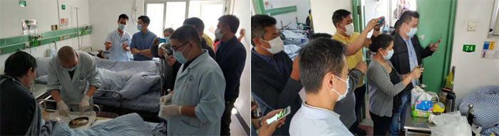 菲專(zhuān)家在科室專(zhuān)家指導(dǎo)下進(jìn)行實(shí)際換藥操作