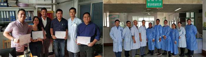 11月14日清晨,菲律賓專(zhuān)家一行便興致勃勃地前往燒傷與創(chuàng)面修復(fù)科病房觀摩再生醫(yī)療技術(shù)在燒傷、糖尿病足潰瘍、壓瘡等創(chuàng)面的規(guī)范化治療,并在科室醫(yī)生的指導(dǎo)下實(shí)際上手操作換藥流程。隨后,各醫(yī)療專(zhuān)家到會(huì)議室就再生醫(yī)療技術(shù)在慢性及難愈性創(chuàng)面的規(guī)范化應(yīng)用再次進(jìn)行了具體的學(xué)術(shù)交流及探討。就再生醫(yī)療技術(shù)在糖尿病足潰瘍、壓瘡創(chuàng)面、糖尿病足潰瘍及皮膚病的良好應(yīng)用效果進(jìn)行了交流,加深了對(duì)再生醫(yī)學(xué)的理解。還特別分享了再生醫(yī)療技術(shù)與微粒皮種植結(jié)合使用的病例等。菲律賓專(zhuān)家高興的表示,盡管他們已有多年的再生醫(yī)療技術(shù)使用經(jīng)驗(yàn),但仍然驚訝于再生醫(yī)療技術(shù)在多學(xué)科應(yīng)用所取得的成就,并表示回國(guó)后將致力于再生醫(yī)學(xué)在菲律賓更廣泛的發(fā)展。最后,由陳錚教授向來(lái)訪的專(zhuān)家團(tuán)隊(duì)頒發(fā)了培訓(xùn)證書(shū),本次來(lái)華交流活動(dòng)圓滿結(jié)束。