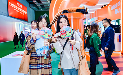 進(jìn)博會(huì)展區(qū),已成為舊金山動(dòng)物園明星的以美寶冠名的小熊貓“LITTLE MEBO”,成為了觀眾們爭(zhēng)相打卡的熱門(mén)形象,為整個(gè)展區(qū)增添了不少樂(lè)趣。