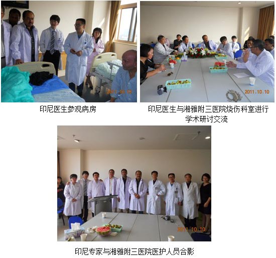 2011年10月8日,國慶長假后的第一周,湖南省三家基地醫(yī)院迎來了由四名整形燒傷科醫(yī)生組成的印尼再生醫(yī)學團隊,此次赴華參觀學習的印尼團隊由美寶印尼Dr. Doni Azmar 醫(yī)生帶隊,印尼棉蘭市亞當馬利克醫(yī)院整形外科主治醫(yī)師Dr. Utama Abdi Tarigan,印尼爪哇島西部城市萬隆市阿桑薩迪金醫(yī)院的整形外科主治醫(yī)師Dr. Ali Sundoro,印度尼西亞蘇拉威西島西南部港市孟加錫市的斯特拉馬瑞斯醫(yī)院的整形外科主治醫(yī)師Dr. Leonardo Rieuwpassa。印尼自2006年來與國際部配合及國內支持下多次組織國內外學習燒傷再生醫(yī)學療法,自2006年至今一直致力于再生醫(yī)學在印尼的推廣和繼續(xù)教育項目,曾在去年、今年7月份分別赴四川、廣州等多家基地醫(yī)院學習了再生醫(yī)療技術,此次是第三次正式來華學習,幾名醫(yī)生也都有較為豐富的再生醫(yī)學臨床應用經(jīng)驗,并成功救治了多例燒傷患者。此行的主要目的在于對再生醫(yī)學臨床應用規(guī)范以及效果進行一次更為深入廣泛的學習以及參觀。