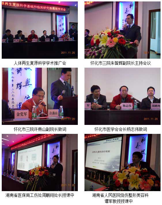 2011年11月20日,由湖南省中西醫(yī)結(jié)合學(xué)會(huì)燒傷專業(yè)委員會(huì)、懷化市衛(wèi)生局舉辦,懷化市三醫(yī)院承辦的再生醫(yī)療技術(shù)全區(qū)培訓(xùn)在市三醫(yī)院多功能廳舉行,會(huì)議由朱副院長主持,邀請的湖南省內(nèi)高級別專家有:湖南省醫(yī)保局工傷處周鵬翔處長、湖南省人民醫(yī)院燒傷整形美容科譚軍教授、湘雅三醫(yī)院燒傷整形美容科彭浩教授、中國中西醫(yī)結(jié)合學(xué)會(huì)燒傷專業(yè)委員會(huì)臨床部金黨軍教授、湖南省人民醫(yī)院燒傷整形美容科李高峰教授等。他們分別從人體再生復(fù)原科學(xué)、激光美容術(shù)后再生療法應(yīng)用、大面積燒傷的再生醫(yī)療技術(shù)應(yīng)用、再生醫(yī)療技術(shù)的多科室應(yīng)用等方面對再生醫(yī)療技術(shù)進(jìn)行實(shí)用技術(shù)培訓(xùn)。其中湖南省醫(yī)保局工傷處周鵬翔處長結(jié)合本職工作及以前的臨床工作經(jīng)驗(yàn)從三個(gè)方面進(jìn)行了闡述,即:引領(lǐng)發(fā)展方向、搶占發(fā)展先機(jī)、學(xué)習(xí)最新技術(shù)。全面闡述了人體再生復(fù)原科學(xué)的基礎(chǔ)發(fā)展和臨床應(yīng)用成果展示。最后,懷化市三院燒傷整形科主任張春喜介紹該院多年來在人體再生復(fù)原科學(xué)的臨床應(yīng)用情況和成果展示。演講者精彩的講座博得了與會(huì)者的一陣陣熱烈的掌聲和一致好評。本次與會(huì)者有懷化地區(qū)各縣市工傷醫(yī)保局領(lǐng)導(dǎo)、各醫(yī)院相關(guān)科室負(fù)責(zé)人200多人,許多人沒能拿到資料,他們留下聯(lián)系方式,希望以后能夠收到。大會(huì)取得圓滿成功!!本次活動(dòng)得到湖南美寶總裁汪波、區(qū)域經(jīng)理侯效東、區(qū)域經(jīng)理陳立新的大力支持。