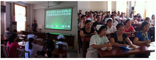 2012年6月1日下午,經(jīng)茂名市衛(wèi)生局批準(zhǔn),應(yīng)該醫(yī)院醫(yī)務(wù)科盧科長邀請,中國中西醫(yī)結(jié)合學(xué)會燒傷專業(yè)委員會常委兼秘書,北京美寶燒傷創(chuàng)瘍研究所副所長、第二臨床研究部主任,《中國燒傷創(chuàng)瘍雜志》副總編輯王洪生研究員到該醫(yī)院做“再生復(fù)原療法在難愈性創(chuàng)面治療新進(jìn)展”臨床專題學(xué)術(shù)講座,參會人員有來自信宜市各級醫(yī)療單位醫(yī)護(hù)代表近100人,在學(xué)術(shù)講座中,王主任首先向與會的專家介紹了著名生命科學(xué)家、醫(yī)學(xué)家、人體再生復(fù)原科學(xué)的創(chuàng)立者、再生復(fù)原療法的發(fā)明人徐榮祥教授近年來在再生醫(yī)學(xué)領(lǐng)域所取得的重大實(shí)驗(yàn)及臨床研究成果,而后王主任結(jié)合了大量的臨床病例圖片及錄像資料,就再生復(fù)原療法在難愈性創(chuàng)瘍創(chuàng)面治療上的一種新方法,對不同深度的燒傷創(chuàng)面及各類難愈性創(chuàng)傷、潰瘍創(chuàng)面的規(guī)范化處理方法與技巧、注意事項(xiàng)等進(jìn)行了細(xì)致地講解,并強(qiáng)調(diào)創(chuàng)面處理要大膽清創(chuàng)、減壓、去除壞死組織,并保持創(chuàng)面生理的濕潤環(huán)境,實(shí)現(xiàn)創(chuàng)面的再生復(fù)原,并建議對病人深達(dá)真皮層以下愈合后創(chuàng)面應(yīng)進(jìn)行防疤處理治療。