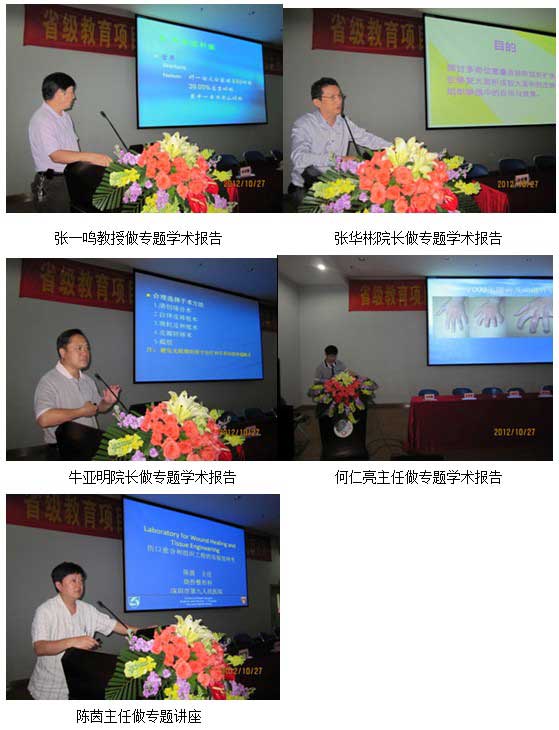 2012年10月27日上午9時(shí),深圳市龍崗中心醫(yī)院學(xué)術(shù)廳,來(lái)自廣東省內(nèi)外的從事燒傷整形外科、骨科、創(chuàng)傷、皮膚外科等相關(guān)專業(yè)的專家及廣東省第一屆中西醫(yī)結(jié)合學(xué)會(huì)燒傷專委會(huì)委員和相關(guān)專業(yè)的醫(yī)護(hù)人員約50余人歡聚一堂,參加2012年省級(jí)繼續(xù)醫(yī)學(xué)教育項(xiàng)目《中西醫(yī)結(jié)合在大面積燒傷救治新進(jìn)展》暨2012年廣東省中西醫(yī)結(jié)合燒傷專委會(huì)學(xué)術(shù)年會(huì)。會(huì)議開始并首先舉行了簡(jiǎn)短的開幕式,開幕式由廣東省中西醫(yī)結(jié)合學(xué)會(huì)燒傷專業(yè)委員會(huì)主任委員蘇順清主任醫(yī)師主持。廣東省中西醫(yī)結(jié)合學(xué)會(huì)金世明秘書長(zhǎng),中國(guó)中西醫(yī)結(jié)合學(xué)會(huì)燒傷專委會(huì)常委兼秘書、《中國(guó)燒傷創(chuàng)瘍雜志》副總編輯、北京美寶燒傷創(chuàng)瘍研究所副所長(zhǎng)、臨床研究部主任王洪生研究員,廣東省中西醫(yī)結(jié)合學(xué)會(huì)理事、國(guó)家中醫(yī)院管理局燒傷重點(diǎn)??平ㄔO(shè)單位學(xué)科帶頭人、廣州市中西醫(yī)結(jié)合醫(yī)院劉樹華副院長(zhǎng),廣東省中西醫(yī)結(jié)合學(xué)會(huì)理事、惠州市第六人民醫(yī)院陳浩院長(zhǎng);龍崗中心醫(yī)院副院長(zhǎng)袁文彬副院長(zhǎng)及廣東省中西醫(yī)結(jié)合燒傷專委會(huì)副主任應(yīng)邀在主席臺(tái)就坐。袁文彬副院長(zhǎng)代表承辦醫(yī)院致歡迎辭,王洪生主任代表中國(guó)中西醫(yī)結(jié)合學(xué)會(huì)燒傷專委會(huì)向大會(huì)表示祝賀,廣東省中西醫(yī)結(jié)合學(xué)會(huì)金世明秘書長(zhǎng)代表廣東省中西醫(yī)結(jié)合學(xué)會(huì)發(fā)表了熱情洋溢的講話,并向與會(huì)代表表示了親切的慰問(wèn),預(yù)祝大會(huì)圓滿成功。