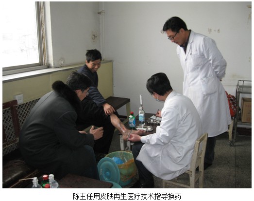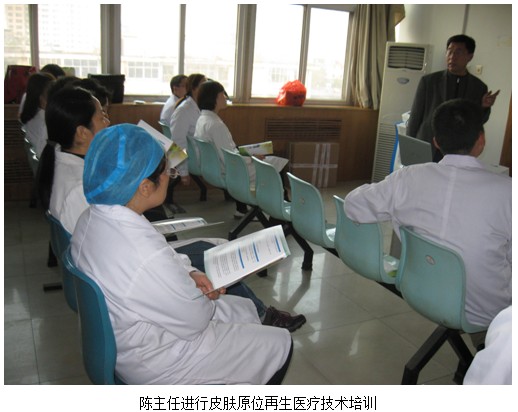 由安醫(yī)院是安陽市一個??漆t(yī)院,共設有病床65張,院長朱志廣對皮膚原位再生醫(yī)療技術非常認可,2011年曾兩次邀請陳主任來院辦班,在臨床取得很大的成績,同時也給醫(yī)院增加了效益。此次應邀三臨該院,住院部主任劉紀把治療的典型病例給陳主任觀看,并希望陳主任會診并講課,進行第三次培訓。