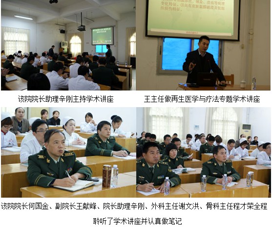 學術(shù)講座于當日下午3時30分在該醫(yī)院會議室舉行,學術(shù)活動由該醫(yī)院院長助理辛剛主持,在專題學術(shù)講座中,王主任向?qū)W員們介紹了再生復(fù)原療法的概念、闡述了皮膚原位再生醫(yī)療技術(shù)原理、與傳統(tǒng)醫(yī)學療法相比再生醫(yī)療技術(shù)的優(yōu)越性,以及近期在英國外科雜志及國際燒傷雜志發(fā)表的有關(guān)“磺胺嘧啶銀及含銀敷料用于創(chuàng)傷(含燒傷)創(chuàng)面,造成創(chuàng)面愈合延遲、增加疼痛和感染率”等最新觀點;并著重講解了濕潤暴露療法、半暴露療法和包扎療法的操作方法及要點;通過臨床病例圖片側(cè)重分析褥瘡、典型糖尿病足、下肢潰瘍等外科常見創(chuàng)傷治療前后過程。重點講述了再生療法在糖尿病足等難愈性創(chuàng)傷治療新進展的情況。通過視頻講述了規(guī)范的換藥方法。治療后理想的愈合效果讓學員們對再生醫(yī)療技術(shù)有了更深刻的認識,得到了在場領(lǐng)導(dǎo)及學員的認可。