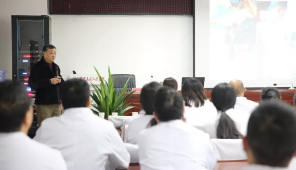 11月23日下午,應(yīng)貴州省銅仁市萬山區(qū)人民醫(yī)院邀請,全國知名再生醫(yī)學專家付子俊教授,在門診四樓大會議室開展了題為“再生醫(yī)療技術(shù)治療難愈性創(chuàng)面及大面積深度燒傷創(chuàng)面治療”的講座,醫(yī)務(wù)科科長陳德銀主持了培訓,各臨床、醫(yī)技及職能科室共150多名醫(yī)務(wù)人員現(xiàn)場聆聽付教授的精彩講座。