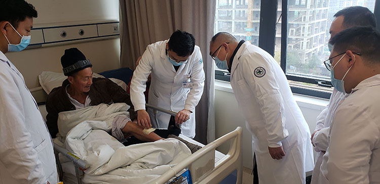 2023年2月24日,應商洛市中醫(yī)醫(yī)院邀請,《中國燒傷創(chuàng)瘍雜志》總編、北京榮祥再生醫(yī)學研究所副所長、中國中西醫(yī)結(jié)合學會燒傷專業(yè)委員會秘書長、北京市中西醫(yī)結(jié)合學會燒傷專業(yè)委員會副主任委員方進勇,中國中西醫(yī)結(jié)合學會燒傷專業(yè)委員會醫(yī)療部副主任宋小紅,陜西省中西醫(yī)結(jié)合學會燒傷與創(chuàng)面修復專委會常務(wù)秘書長劉華主任,前往醫(yī)院技術(shù)指導交流典型病例,李主任、張主任陪同專家到科室查房會診大面積燒傷和糖尿病足患者,確定治療方案。