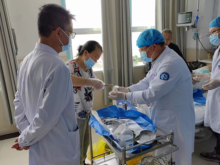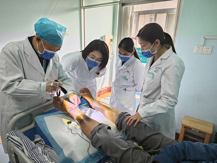 2024年4月12日,應(yīng)湖北省孝感市應(yīng)城市中醫(yī)醫(yī)院肛腸科陳培彥主任邀請,《中國燒傷創(chuàng)瘍雜志》編委、燒傷創(chuàng)瘍再生醫(yī)療技術(shù)臨床專家張強(qiáng),來到該院對一例意外燒傷的肛腸病人進(jìn)行了會診,現(xiàn)場運(yùn)用再生醫(yī)療技術(shù)示范換藥講解細(xì)節(jié),受到大家好評!