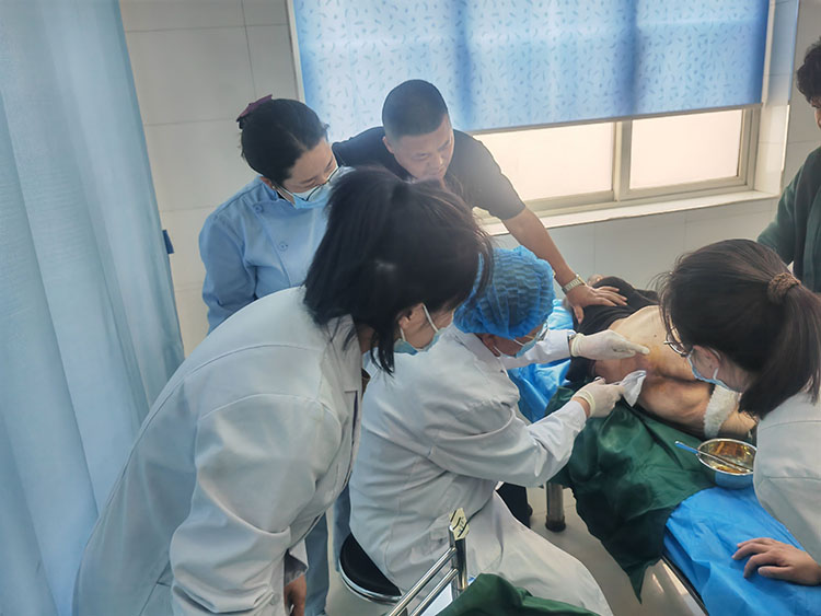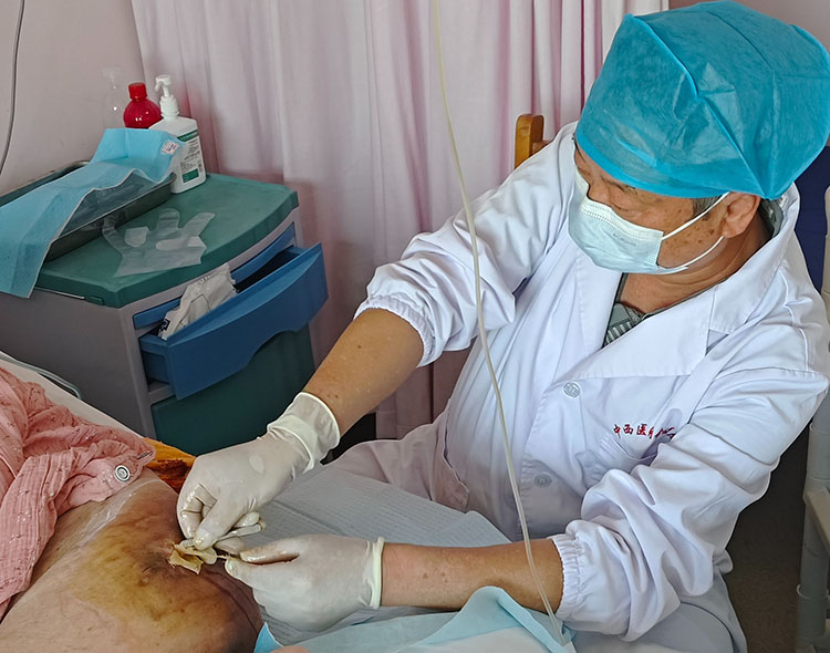 4月11日,應(yīng)雞澤縣中醫(yī)院之邀,《中國燒傷創(chuàng)瘍雜志》常務(wù)編委、燒傷創(chuàng)瘍再生醫(yī)療技術(shù)臨床專家趙瑞慶,在該院使用再生醫(yī)療技術(shù)會診了二例慢創(chuàng)患者(1例左下肢靜脈曲張潰瘍20年,1例截癱合并雙側(cè)壓瘡8年)。事后與當(dāng)?shù)蒯t(yī)務(wù)人員共同討論了下一步治療方案并在科里進(jìn)行了技術(shù)培訓(xùn),特別強(qiáng)調(diào)了靜脈曲張、壓瘡再生技術(shù)修復(fù)創(chuàng)面的注意事項(xiàng),受到了當(dāng)?shù)蒯t(yī)務(wù)人員的熱情稱贊。
